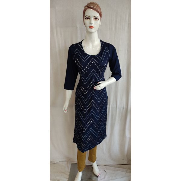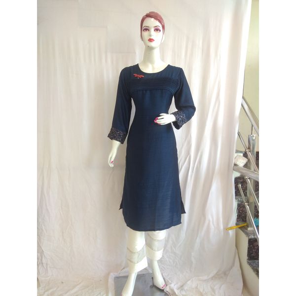 Women Blue Rayon Thread Sequence Work Single Kurti