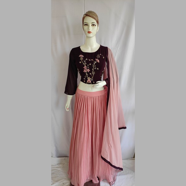 Women Wine Pink Embroidered Silk Georgette Lehenga Choli