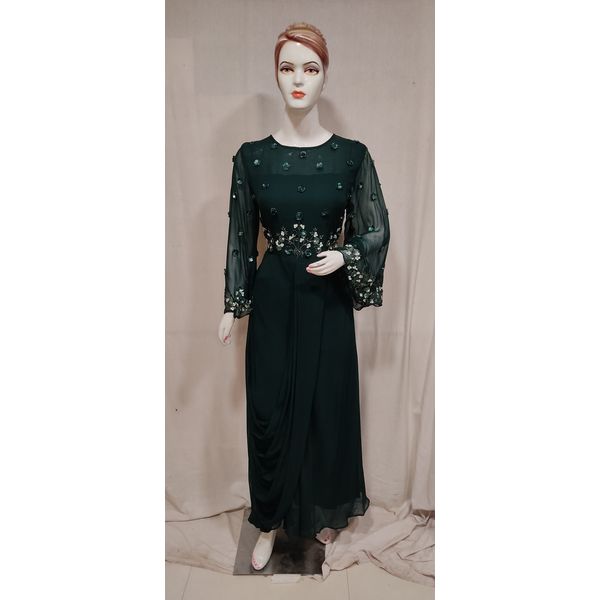 Women Bottle Green Embroidered Stylish Georgette Flared Anarkali Kurtis