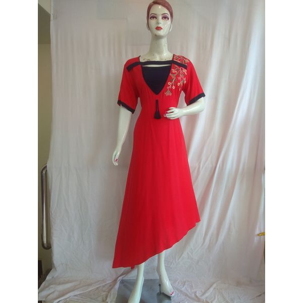 Women Black Embroidered Chiffon Long Frock Style Kurti