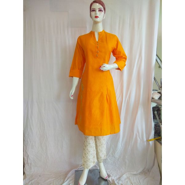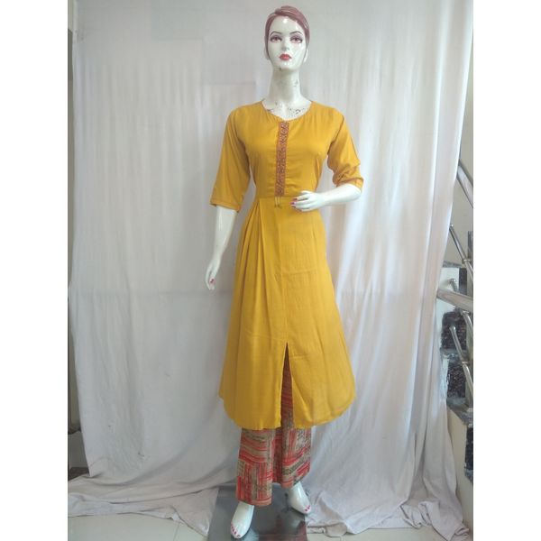Women Rayon Cotton Straight Kurta Multicolor Palazzo Set (Mustard)