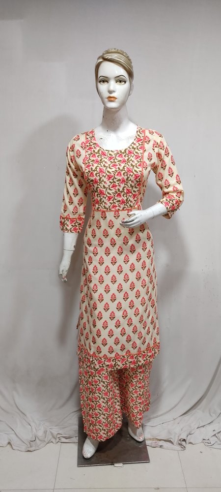 Women Multicolor Printed Cotton Straight Kurti Plazzo set