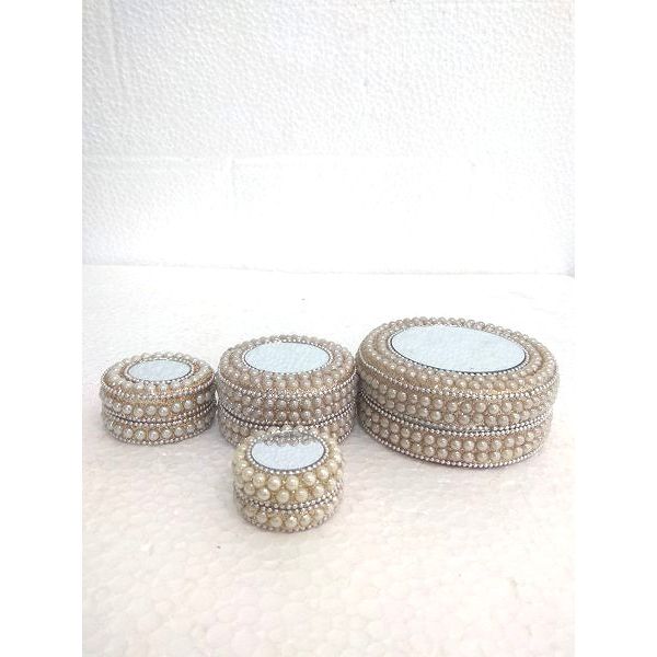 Multipurpose(Sindoor/Jwelery/KumKum) Decorative Set of 3 Pearl Work Dibbi Set With Mirror