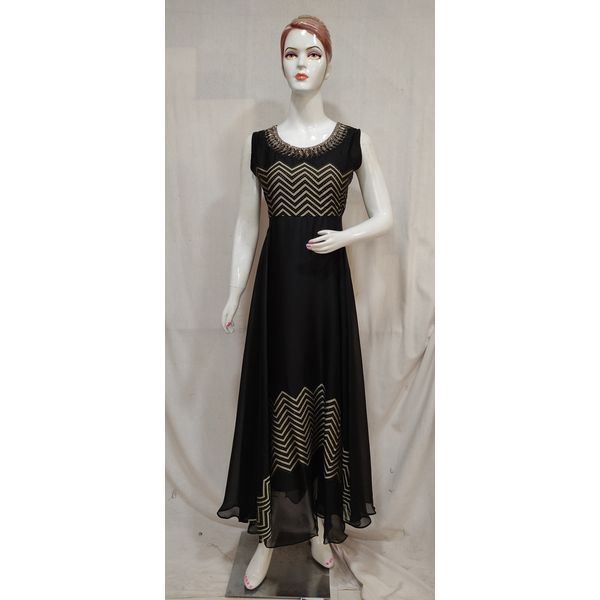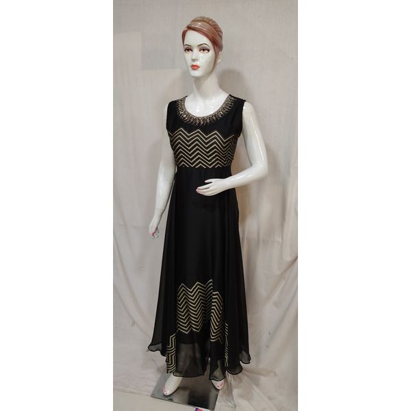Women black embroidered chiffon long frock style kurti promises for latest fashion, trendy designs and elegant look. Our unique designer collection with best fabric and fitting outfits enhance your beauty. This Multipurpose very comfortable kurti is useful for all occasions festivals, offices, parties and in daily wear at very reasonable price.