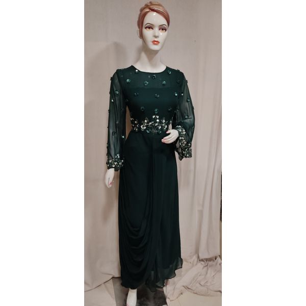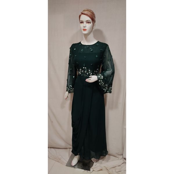 Women bottle green embroidered stylish georgette flared anarkali kurtis promises for latest fashion, trendy designs and elegant look. Our unique designer collection with best fabric and fitting outfits enhance your beauty. This Multipurpose very comfortable kurti is useful for all occasions festivals, offices, parties and in daily wear at very reasonable price.