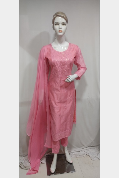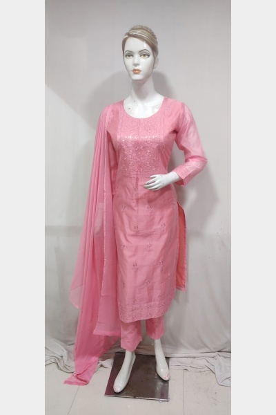 Women pink embroidered chanderi straight kurta pant dupatta set promises for latest fashion, trendy designs and elegant look. Our unique designer collection with best fabric and fitting outfits enhance your beauty. This Multipurpose very comfortable kurti is useful for all occasions festivals, offices, parties and in daily wear at very reasonable price.