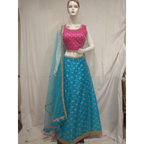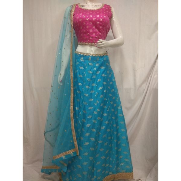 Women rani sky blue silk crop top with lehenga promises for latest fashion, trendy designs and elegant look. Our unique designer collection with best fabric and fitting outfits enhance your beauty. This Multipurpose very comfortable kurti is useful for all occasions festivals, offices, parties and in daily wear at very reasonable price.