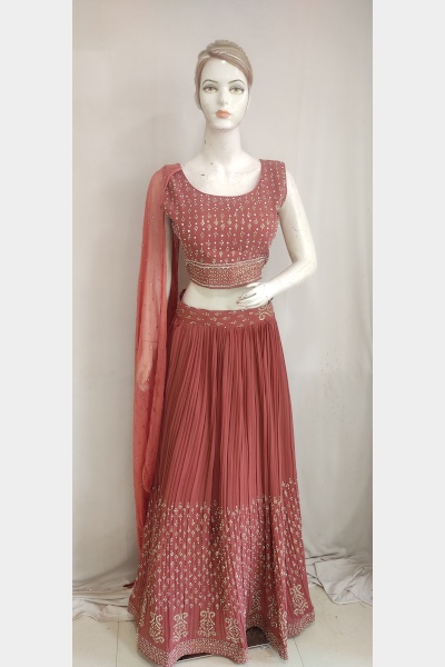 Women rose embroidered georgette lehenga choli dupatta set promises for latest fashion, trendy designs and elegant look. Our unique designer collection with best fabric and fitting outfits enhance your beauty. This Multipurpose very comfortable kurti is useful for all occasions festivals, offices, parties and in daily wear at very reasonable price.