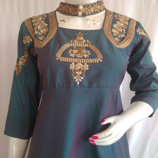 OMBs satin blue colored party wear gown promises for latest fashion, elegant look, trendy designs and finest quality fabric.Our Only objective to provide you an unique designer collection with best fabric and fitting kurta that enhance your beauty and bring smile on your face.This Multipurpose very comfortable kurti is useful for all occasions festivals, offices, parties and in daily wear at very reasonable price.