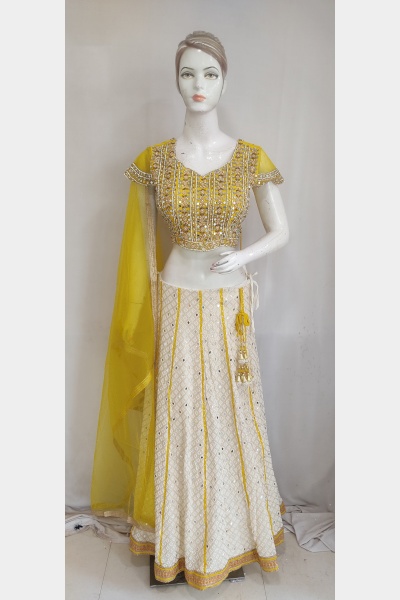 Women Multicolor Embroidered Georgette Lehenga Choli Dupatta Set