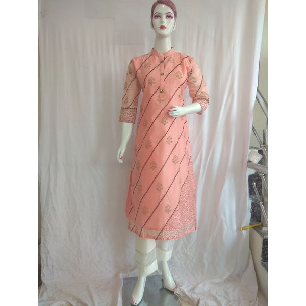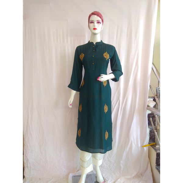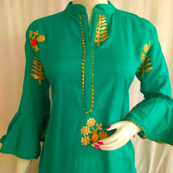 Women Cotton Gota Embroidery Designer Kurti(Teal Grean)