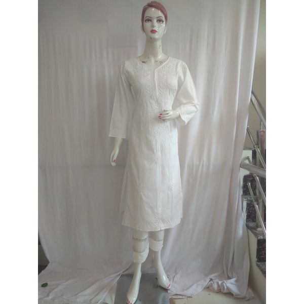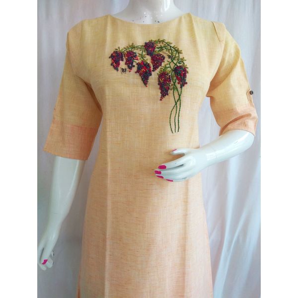 Women Khadi Cotton Thread Embroidery Kurti (Cream)