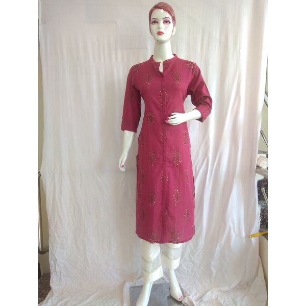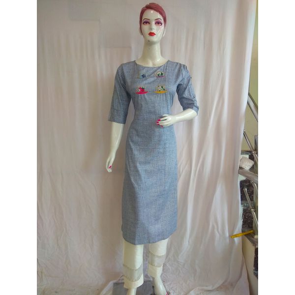 Women Cotton Thread Embroidery Kurti (Multicolor)